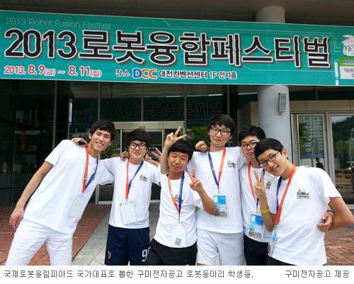 [쿠키 과학] 구미전자공고는 로봇동아리 학생들이 ‘2013 로봇융합페스티벌-국제로봇올림피아드 한국대회’에서 국가대표 선수로 발탁됐다고 19일 밝혔다.