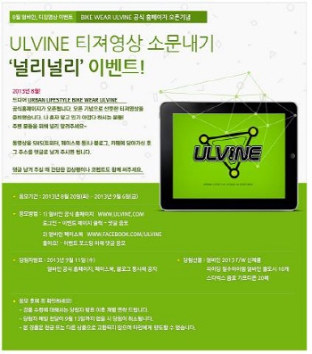 [쿠키 생활] 호전리테일이 전개하는 바이크웨어 브랜드 ‘얼바인(ULVINE)’이 20일 공식 홈페이지 오픈 기념으로 ‘널리널리’ 이벤트를 진행한다.