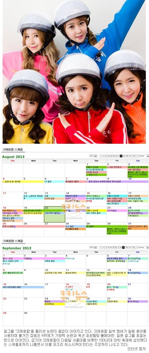 20일 인터넷 유명 커뮤니티와 트위터 등에는 크레용팝의 8, 9월 스케줄표가 올라와 눈길을 끌었다.