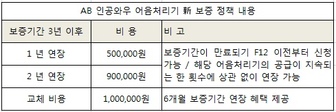 보증기간 내에 문제가 생겨 교체가 필요한 제품은 AB사의 리퍼비시(refurbish) 정책에 따라 무상으로 제품이 교체된다. 기존에는 보증기간이 만료된 이후 제품을 교체하기 위해서는 100만원의 비용 부담이 있었다.