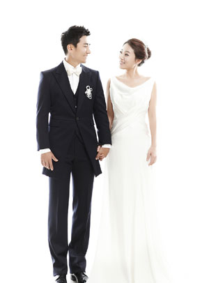 광고 스타일리스트인 4살 연하의 신부는 직업적 커리어가 묻어나듯 단아하면서도 세련된 웨딩드레스 자태를 뽐내고 있다. 고급스러움을 살린 심플한 디자인의 웨딩드레스는 신부가 가진 이지적인 분위기를 부각시켜 우아한 신부의 이미지를 연출했다.