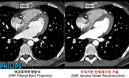 이에 앞서 필립스는 지난 6월 서울에서 개최된 ‘2013 국제CT심포지움’에서 방사선량을 혁신적으로 줄이면서 고품질의 영상을 매우 빠른 속도로 구현하고, 복부뿐 아니라 신경두경부 및 심장혈관 촬영에까지 적용 가능한 새로운 지식기반 반복재구성 기술인 IMR을 발표한 바 있다.
