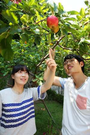 [쿠키 사회] 동아대학교는 승학캠퍼스 본관 앞 운동장 입구에 있는 ‘뉴턴 사과나무’에서 식수 3년 만에 사과가 빨갛게 익었다고 29일 밝혔다.