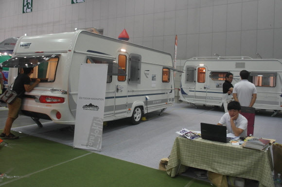 [쿠키 생활] 스노우라인은 백패킹부터 오토캠핑용 용품까지 캠핑에 관련된 모든 제품과 함께 독일 펜트 사의 트레일러들을 전시했다.