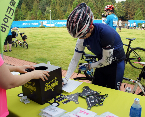 대회 시작에 앞서 얼바인 부스에서 쿨토시 및 피케 티셔츠를 나눠주는 경품 행사에는 400여명이 참가해 성황을 이뤘다. 자전거 퍼레이드가 끝난 후 진행된 럭키 드로우에서도 추첨을 통해 얼바인 의류 세트를 증정해 동호인들의 큰 호응을 얻었다.