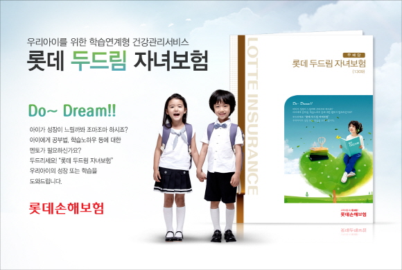 ‘롯데 두드림 자녀보험’은 학습 및 건강관리 서비스 제공으로 자녀 성장 및 학습 상태를 진단·분석해 자녀 성장에 도움이 될 수 있도록 진단 및 멘토링 프로그램을 도입했다. 자녀 교육시기에 따라 필요 교육자금의 경제적 대비를 위해 ‘부양자 교육자금 담보’를 신설해 부양자의 갑작스런 사고나 질병으로 사망 또는 80% 이상의 후유장해 시 자녀연령에 따라 교육자금을 최대 9300만원까지 보장 받을 수 있게 설계했다.