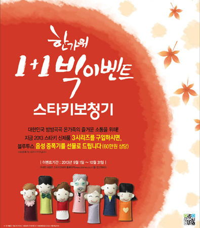 [쿠키 건강] 보청기 회사 스타키코리아(대표 심상돈)는 추석 명절을 맞아 ‘한가위 1+1 빅이벤트’를 실시한다고 4일 밝혔다.
