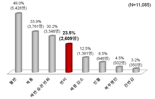 대한대장항문학회는 4일 기자간담회를 열고 지난 3년간 총 24개 병원에서 대장암 수술을 받은 환자 1만 7415명을 분석한 결과 이같이 나왔다고 밝히며 변비를 일상적인 현상쯤으로 생각하는 국민들의 인식에 개선이 필요하다고 지적했다.