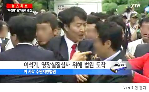 내란음모 혐의로 구속 위기에 놓인 이석기 통합진보당 의원이 5일 구속영장 실질심사를 받기 위해 수원지법에 도착한 뒤 심문실로 들어서는 과정에서 국정원 직원들과 몸싸움을 벌였다. 이 의원의 모습을 실시간으로 지켜본 네티즌들은 트위터와 커뮤니티 등에서 이 의원을 겨냥해 비난의 목소리를 높였다.