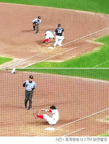 그러나 중계방송 화면을 확인한 결과 판정은 오심이었다. 손시헌이 1루 베이스를 밟는 순간 송구를 잡은 박정권의 발은 떨어져 있었다. 명백한 상황이어서 1루에 가장 가까이 있는 1루심이 놓칠만한 상황이 아니었다. 송구 이전까지의 상황에서 호수비를 선보인 최정도 어리둥절한 표정을 지었다.