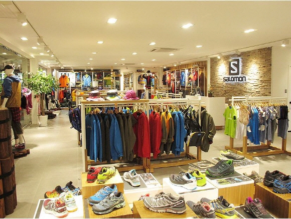 살로몬 아웃도어 검단산 점에서는 등산 전문 ‘아웃도어 퍼포먼스’, 산 밑의 아웃도어 활동에 적합한 ‘액티브 웨어’, 포장되지 않은 길을 달리는 ‘트레일 러닝’, 트레일 러닝 전문가용 ‘에스랩’ 등 4개 라인의 상품들을 만나볼 수 있다.