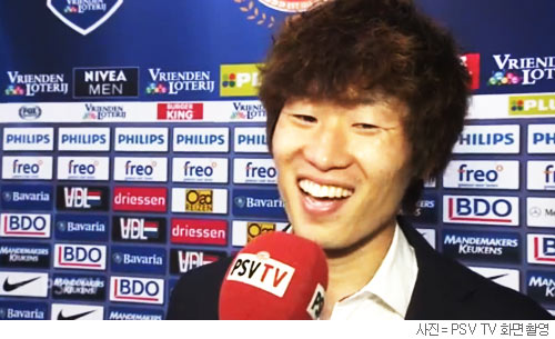 박지성은 23일 네덜란드 아인트호벤 필립스스타디움에서 아약스를 4대 0으로 격파한 2013~2014시즌 에레디비지에 7라운드 홈경기를 마친 뒤 구단 방송인 PSV TV의 인터뷰에 응했다. 오른쪽 공격수로 선발 출전한 그는 전·후반 90분간 1득점 1도움을 기록하며 팀의 대승을 이끈 주인공이었지만 인터뷰에서는 냉정한 표정과 차분한 말투를 잃지 않았다.