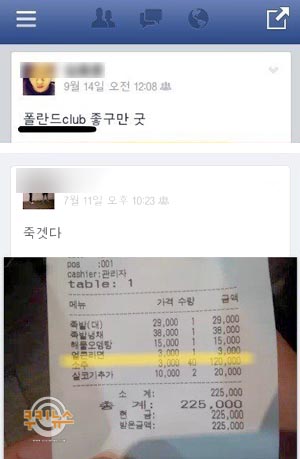 또 다른 학생 B군은 음식점에서 소주를 무려 40병이나 주문한 영수증 사진을 올려 물의를 일으켰다. 미성년자는 법적으로 술을 구입할 수 없다.