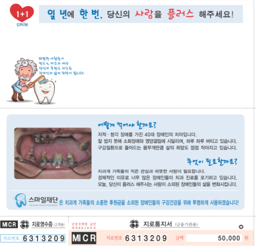 이번 특별모금은 대한치과의사협회와 한국치과기재산협회로부터 회원명부 주소록을 협조 받아 치과 의료계와 치과기재업체로 후원금 지로용지가 발송됐다.