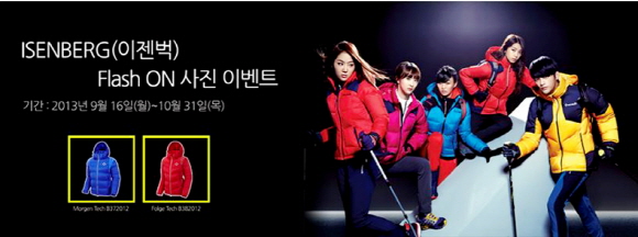 [쿠키 생활] 이젠벅은 가을겨울 시즌 다운재킷 출시를 기념해 오는 30일까지 전국 매장에서 다운재킷 사진 촬영 후 페이스북에 올리면 다운재킷 신제품을 증정하는 ‘플래시온(Flash On) 사진 이벤트’를 실시한다고 밝혔다.