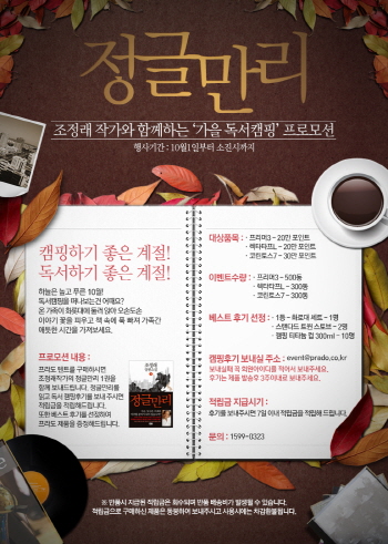 [쿠키 생활] 바야흐로 가을이다. 가을은 독서의 계절이자 화로대의 온기가 훈훈한 캠핑의 계절이기도 하다. 이에 캠핑전문브랜드 프라도가 업계 처음으로 독서를 주제로 한 프로모션을 개최한다.
