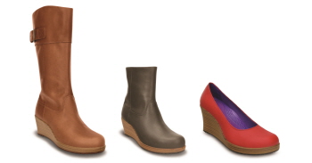 크록스의 ‘레이웨지 시리즈’는 자체 개발한 크로슬라이트 소재의 굽으로 가벼운 쿠션감과 최적의 착화감을 제공해 장시간 걸어도 발의 편안함을 유지한다. 천연가죽 소재를 사용해 고급스러움을 더했으며, 드레시한 롱부츠, 앵글부츠, 토슈즈 등 트랜디함을 고려한 다양한 스타일로 출시됐다.
