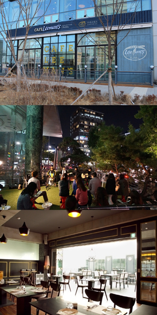 프리미엄 분식 프랜차이즈 스쿨푸드에서는 가로수길 상권 활성화와 문화적 상징성을 부각시키기 위해 매주 금요일 저녁, 베란다 공연을 펼치고 있다.