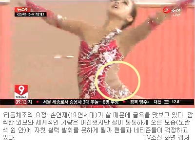 전날 손연재 경기를 실시간으로 지켜본 네티즌들은 인터넷 커뮤니티에 관련 글을 수두룩하게 올리며 안타까워했다. 한 네티즌은 스포츠 전문 게시판에 “경기 도중에는 워낙 동작이 빨라 잘 나타나지 않지만 대기석에 앉아 있는 모습을 보면 안쓰럽다”며 ‘옆구리에 살이 접혀서 숨을 쉴 때마다 출렁거리는 게 드러날 정도“라고 적었다.