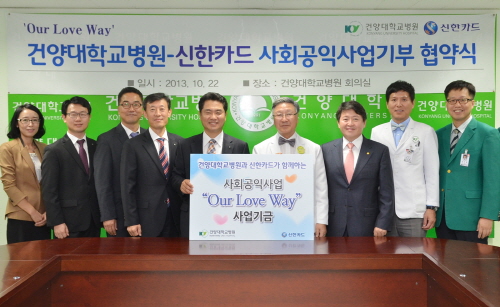 [쿠키 건강] 건양대병원은 신한카드사와 공동으로 사회공익사업을 펴나가기 위해 ‘아우어 러브 웨이(Our Love Way)’ 협약을 체결했다고 22일 밝혔다.
