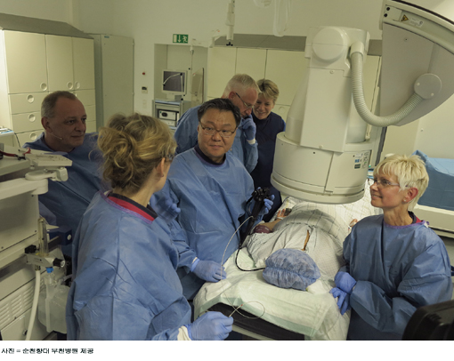 [쿠키 사회] 순천향대학교 부천병원는 이 병원 소화기내과 문종호 교수팀(문종호·김동춘 교수)이 지난 12~16일 독일 베를린에서 개최된 ‘2013 유럽소화기학회 주간(UEGW:United European Gastroenterology Week)’에서 한국인 최초로 초청 내시경 라이브 시술을 시연했다고 23일 밝혔다.