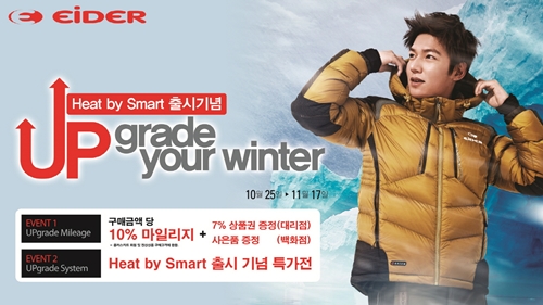 [쿠키 생활] 프랑스 아웃도어 브랜드 아이더가 올 하반기 아웃도어 시장을 적극 공략하기 위해 다운 재킷 기능성 시스템인 ‘히트 바이 스마트 시스템(Heat by Smart system)’을 론칭했다. 그리고 이를 기념해 오는 10월25일부터 11월17일까지 ‘업그레이드 유어 윈터(Upgrade your winter)’ 이벤트를 진행한다.