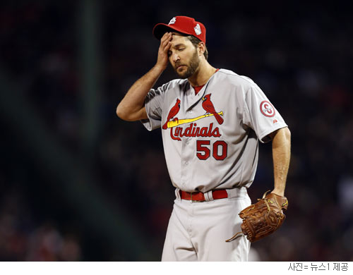 [쿠키 스포츠] 미 프로야구 메이저리그 챔피언십시리즈에서 류현진(26·LA 다저스)에게 완패한 세인트루이스 카디널스의 에이스 아담 웨인라이트(32·사진)가 월드시리즈 첫판에서 무너졌다.