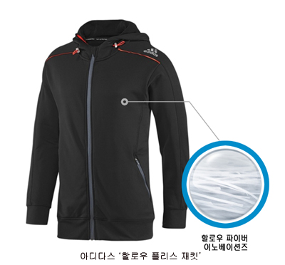 스포츠 브랜드 아디다스는 극한의 날씨 속에서 생활하는 북극곰의 털에서 영감을 받아 개발된 할로우 파이버 테크놀로지를 적용한 ‘할로우 플리스 자켓’을 출시했다. 섬유의 가운데가 비어 더욱 많은 양의 공기를 함유하는 것이 가능해 가볍고 따뜻하며 차가운 습기는 기존의 원단보다 빠르게 제거되는 것이 특징이다. 또한 신축성이 좋은 엘라스틴 소재가 추가돼 우수한 착용감과 자유롭고 편안한 움직임을 제공한다.
