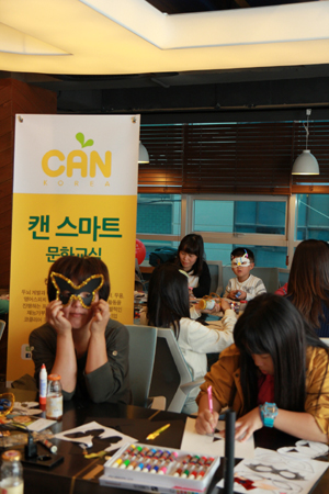 이날 문화교실에서 다가오는 할로윈데이를 맞아 가면 만들기 시간을 가졌다. 참가자들은 직접 그림을 그리고 종이를 붙여 만들면서 창의력과 상상력을 계발했다. 미술 수업은 캔코리아 회원이자 현재 미술 교육 강사로 활동 중인 송진희씨 재능기부로 진행됐다.