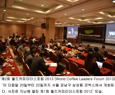 [쿠키 생활] ‘제2회 월드커피리더스포럼 2013 (World Coffee Leaders Forum 2013)’이 다음달 20일부터 22일까지 서울 강남구 삼성동 코엑스에서 열린다.
