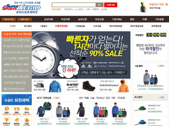 슈퍼스포츠제비오는 온라인몰에서 오는 31일 하루 동안 새벽 0시부터 매 1시간마다 90% 할인가에 아웃도어 상품을 판매하는 ‘24시간 90% 타임세일’ 이벤트를 진행한다.