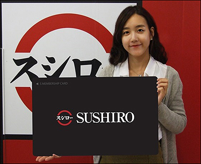 스시로 S멤버십 카드는 최종 결제 금액의 3%가 적립되는 포인트카드로 5000포인트 이상 적립하면 현금처럼 사용이 가능하다. 가입하는 S멤버십 회원 전원에게 2000포인트를 지급하며 생일과 지정한 기념일에 2300원 3접시 무료쿠폰을 제공한다.