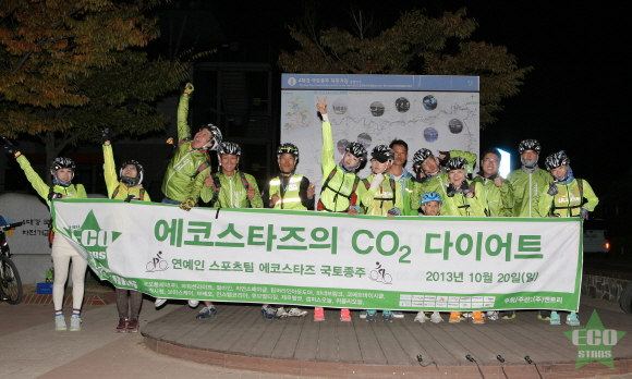 여의도 마리나 인증센터에 60여명의 연예인들이 모여 출발한 에코스타즈의 국토종주는 에너지 절약운동과 함께 CO2 다이어트를 직접 실천하는 저탄소 캠페인으로 큰 의미를 담고 있다.