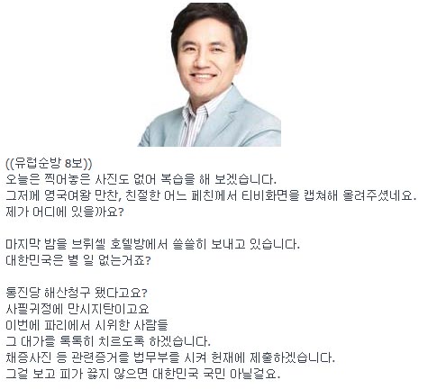 [쿠키 정치] 유럽 순방중인 박근혜 대통령을 수행 중인 새누리당 김진태(49) 의원이 프랑스 파리에서 대통령을 부정하는 내용으로 시위에 나선 사람들에게 막말을 해 논란이 일고 있다.