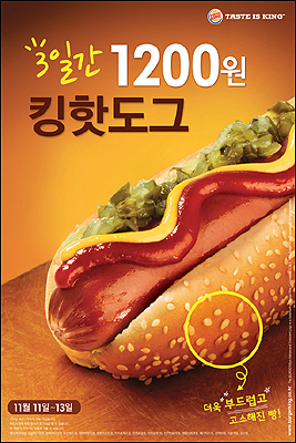 [쿠키 생활] 버거킹이 11일부터 13일까지 3일간 전보다 업그레이드된 ‘킹핫도그’를 1200원에 판매한다.