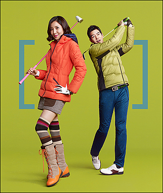 ‘리얼-테크 퀼팅 스윙 다운’은 가벼운 소재를 사용해 활동성은 높이고 방풍 소재의 안감을 덧대 따뜻함을 더한 겨울용 골프 웨어다. 오렌지, 마젠타, 레몬그린 등 비비드한 컬러감이 세련된 제품으로 다운 충전재를 사용해 보온성을 높이고 소매에 시보리 처리를 해 필드 위의 칼바람을 막아준다. 컬러 배색이 들어간 탈부착 후드와 지퍼로 포인트를 줬으며 피치 가공된 표면의 소재는 고급스러움을 더한다. 특히 여성제품의 경우 실고무사를 지그재그 모양으로 잡아 스윙 시 편안한 움직임을 제공하면서도 몸매 라인을 살려주며 남성제품은 옆구리와 팔 부분에 신축성 있는 소재를 사용해 필드에서의 역동적인 움직임을 고려했다.