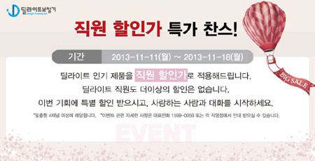 최근 딜라이트 보청기는 사회혁신 및 경제적 지속가능성을 인정 받아 ‘2013 대한민국 사랑받는 기업 정부포상’에서 산업통상자원부 장관상을 수상한 바 있으다. 딜라이트 보청기에서 진행하는 직원가 특별 할인 프로모션은 회사와 직영점에 문의하면 된다.(문의: 1599-0059)