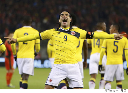 콜롬비아는 15일 벨기에 브뤼셀에서 열린 벨기에와의 대표팀 친선경기에서 후반 6분 팔카오의 선제 결승골과 후반 21분 세군도 이바르보(23·칼리아리)의 추가골을 앞세워 2대 0 완승을 거뒀다. 이미 본선 진출권을 확보한 두 팀의 승부는 국제축구연맹(FIFA)의 11월 A매치데이 일정 가운데 월드컵 대륙별·대륙간 플레이오프를 제외하고 가장 많은 관심을 모았다.