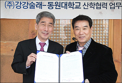 ㈜강강술래는 지난 14일 경기도 고양시 강강술래 늘봄농원점에서 동원대학교 호텔조리과와 한식 우수인재 양성을 위한 산학협력 업무협약(MOU)을 맺고 긴밀한 교류를 진행해 나가기로 합의했다고 15일 밝혔다.