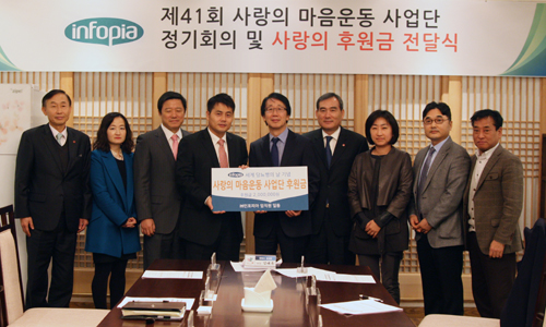 인포피아는 사랑의 마음운동 사업단과 협약을 체결하고 지난 6년간 사회공헌활동을 펼쳐 왔으며, 후원금과 별도로 해마다 연 1000만원 이상 규모의 당뇨측정기와 스트립을 지원하고 있다.