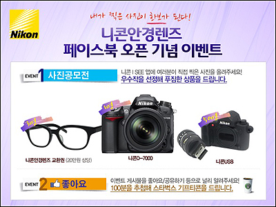 이벤트 상품으로는 니콘 DSLR 카메라, 20만원 상당의 니콘 안경렌즈 교환권, 니콘에서 특별 제작한 니콘 카메라 모양의 USB 등 다양한 경품이 제공된다. 또한 ‘좋아요’나 ‘공유하기’를 통해 이벤트 게시물을 널리 알리는 이들 중에서도 100분을 추첨해 스타벅스 커피 기프티콘을 증정한다. 이벤트는 다음달 20일까지 진행된다. 국민일보 쿠키뉴스 박주호 기자 epi0212@kmib.co.kr