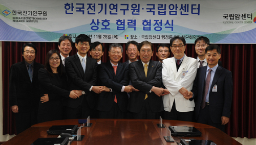 [쿠키 건강] 한국전기연구원(원장 김호용)과 국립암센터(원장 이진수)은 28일 양 기관 임직원이 참석한 가운데 의료기기 기술갭라과 임상의료기술 간 상호연구협력 추진을 위한 협력협정(MOU)을 체결했다.