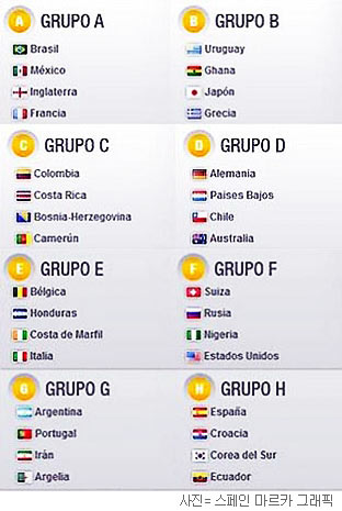 A조는 ‘죽음의 조’다. 개최국 브라질과 멕시코, 잉글랜드, 프랑스가 A조에서 난투를 벌인다. F조의 경우 미국과 러시아의 ‘냉전더비’에 스위스와 나이지리아가 합류한 ‘혼란의 조’다.