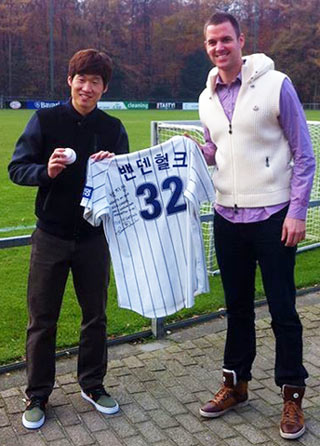 [쿠키 스포츠] 박지성(32·PSV 에인트호벤)이 프로야구 삼성 라이온즈를 한국시리즈 정상으로 이끈 외국인 투수 릭 밴덴헐크(28·네덜란드)를 만났다.