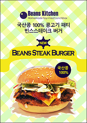 [쿠키 생활] 국내 최초 콩고기 도시락 전문점 빈스키친이 콩고기 패티로 만들어 칼로리는 낮추고 영양은 높인 건강한 햄버거 ‘빈스스테이크버거’를 출시한다.