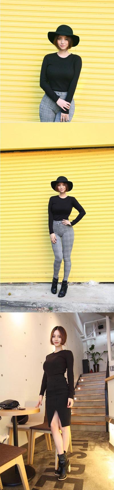 검은색 원피스를 착용한 사진 몇 장도 함께 나돌았다. 바지를 입은 사진보다 하반신이 부각되진 않지만 대신 이번에는 풍만한 가슴이 도드라져 보인다.