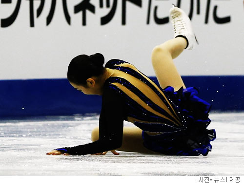 그러나 주무기로 앞세운 트리플 악셀(3회전 반 점프)을 두 번이나 실패하며 여전히 불안한 모습을 보였다. 프리스케이팅 곡인 ‘라흐마니노프의 피아노협주곡 2번’의 선율에 맞춰 처음 시도한 트리플 악셀에서는 균형을 잃고 엉덩방아를 찧고 감점을 당했다. 지난 10월 21일 미국 미시간주 디트로이트에서 열린 그랑프리 1차 대회를 연상케 하는 장면이었다. 두 번째 트리플 악셀에서도 회전수를 채우지 못했다.