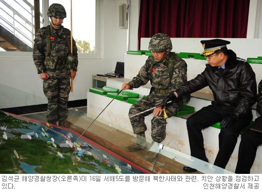 [쿠키 정치] 북한 사태와 관련, 북 도발에 대비하기 위해 김석균 해양경찰청장이 서해에서 조업 중인 우리나라 어선들의 안전 관리 상황 및 대북 접적해역 치안현장을 점검했다.