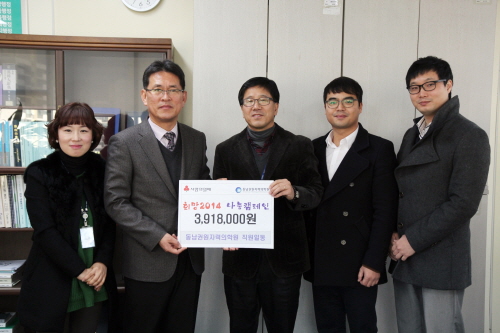 [쿠키 건강] 동남권원자력의학원이 임직원을 대상으로「희망 2014 나눔 캠페인」을 실시해 모금한 성금을 12월 20일 기장군청에 기탁했다.