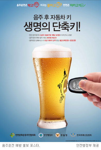 안전행정부가 27일 발표한 자료에 따르면 최근 5년 동안 음주운전 사고로 매년 평균 5만1667명의 사상자가 발생하고 있다. 이는 매년 교통사고 사상자(평균 35만3417명)의 14.6%에 해당된다.